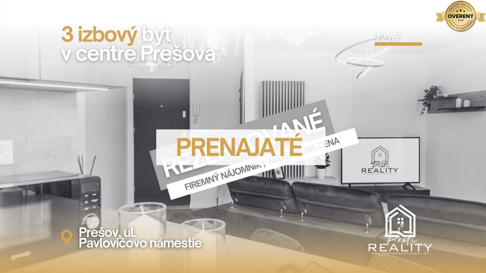 Firmu Profi Reality Sabol, konkrétne pani Canning, som oslovila za účelom prenájmu môjho 3izb.bytu. Do úvahy prichádzal i predaj, či následná kúpa. Tu som bola zodpovedne a profesionálne poinformovana. Nakoniec po zvážení a porovnaní viacerých variant mi pani Canning veľmi promptne našla záujemcov o prenájom. Promptne znamenalo rezerváciu do 6 dní. Určite nemalou mierou prispeli aj vynikajúco spravené a prezentované fotografie. V každom prípade pani Canning ďakujem veľmi pekne za všetko a jednoznačne môžem ďalej každému odporúčať, kto potrebuje pomoc pri riešení v oblasti realít!!!