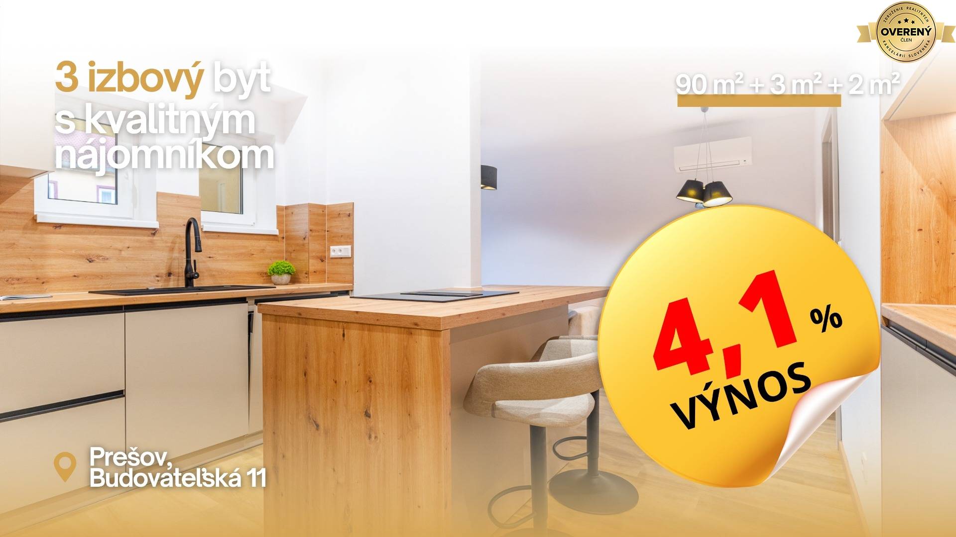 PREDAJ | 3i byt 90 m² v centre PO s kvalitnými NÁJOMNÍKMI | 4,1% p. a.