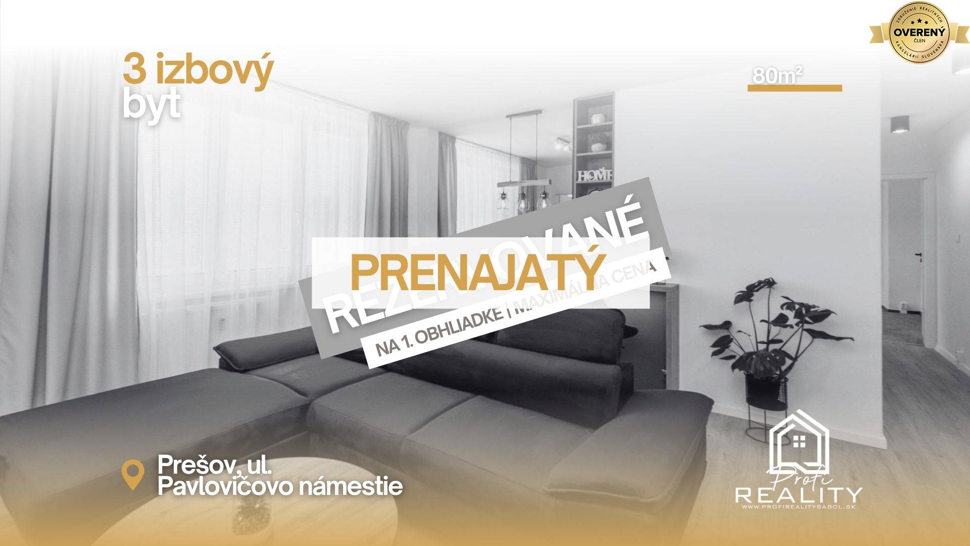 PRENAJATÝ | 3i byt 72 m² v centre Prešova, zariadený